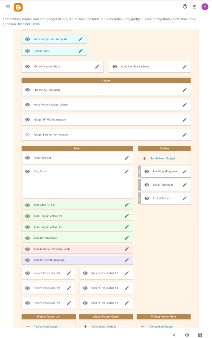 Tata Letak Di sini adalah tempat sobat mengatur tata letak blog sobat dan juga tempat untuk memasang widget blog seperti widget artikel populer, atau widget pengikut.