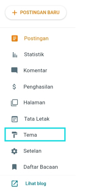 Tema (sebelumnya disebut Template) Di sini adalah tempat untuk mengganti template atau tema blog sobat. Selain itu sobat juga bisa mengedit langsung template blog sobat pada menu ini.